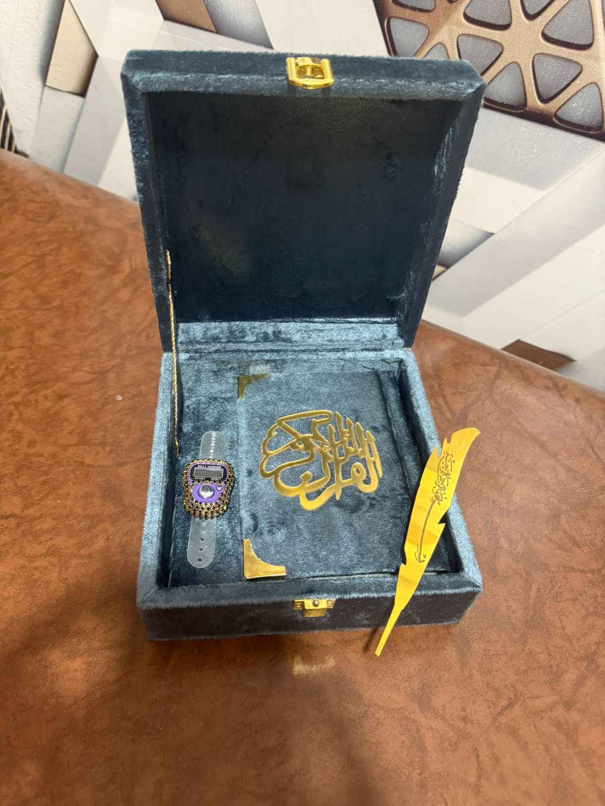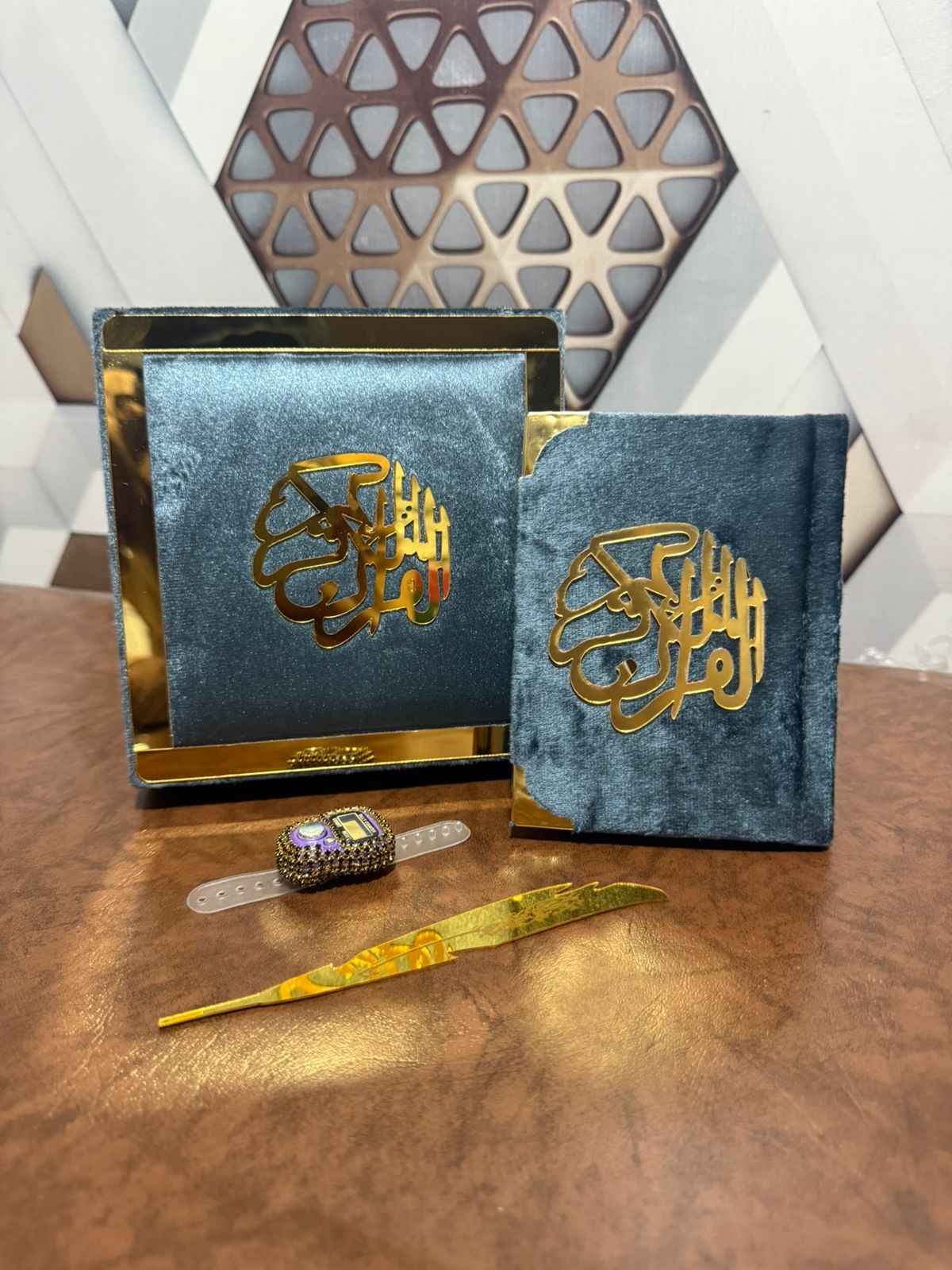 ''Velvet Quran with Box, Bookmark, Digital Counter Tasbeeh, "
