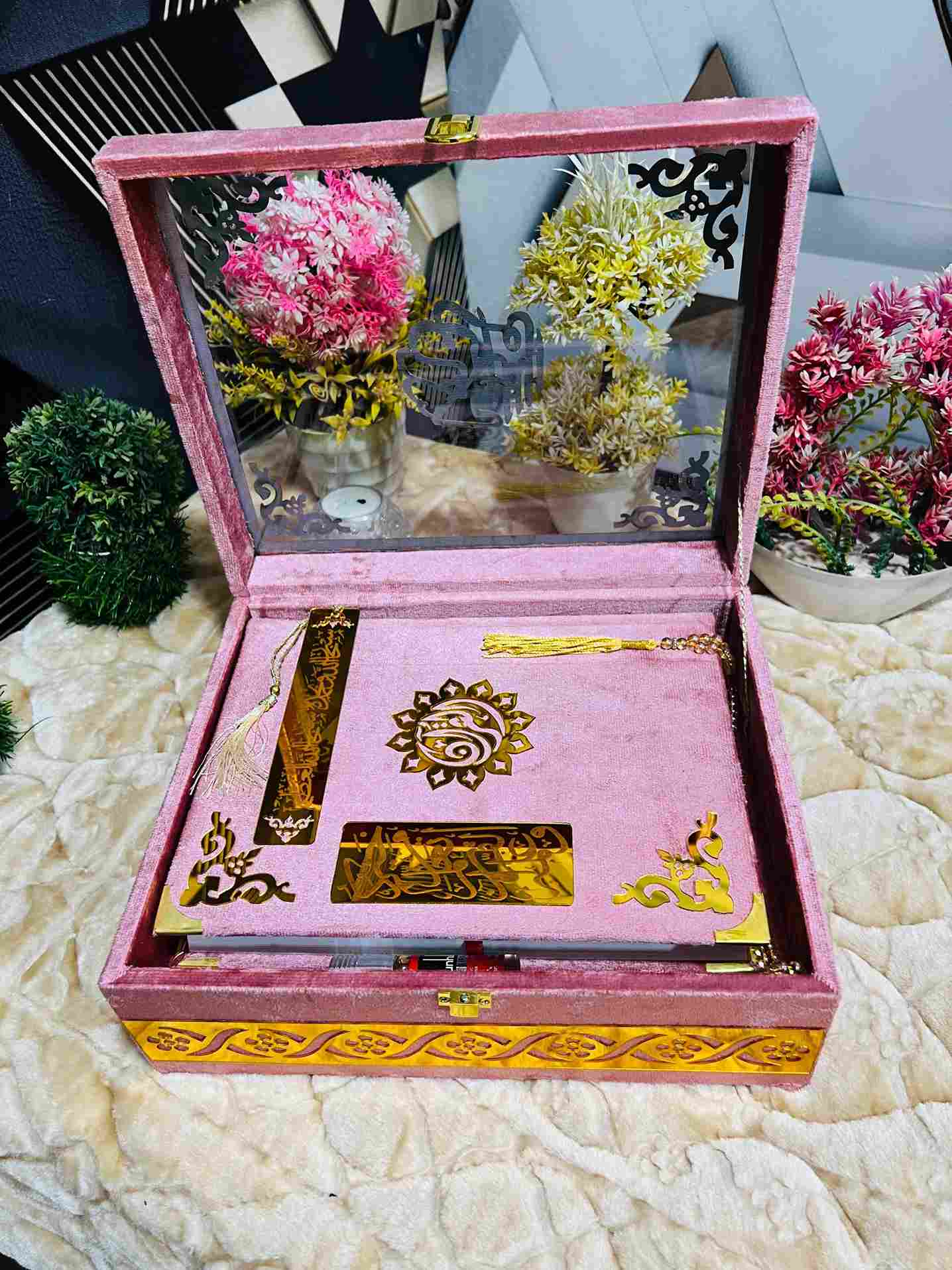 Deluxe Quran with Urdu translation, Velvet Cover, and Golden Acrylic design in display box