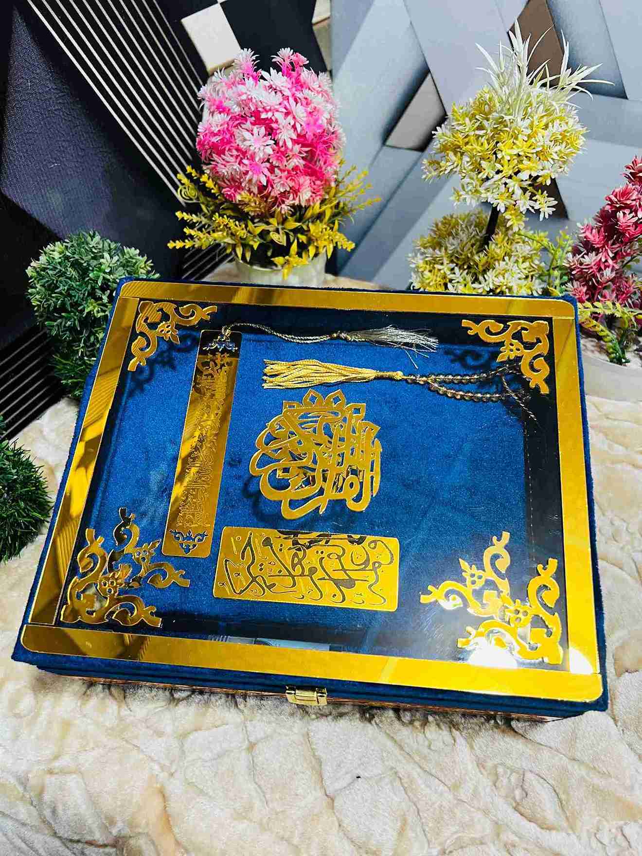 Deluxe Quran with Urdu translation, Velvet Cover, and Golden Acrylic design in display box